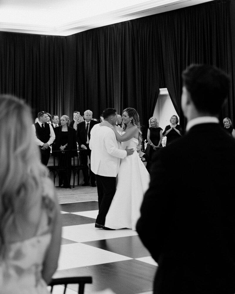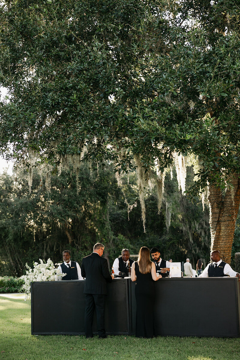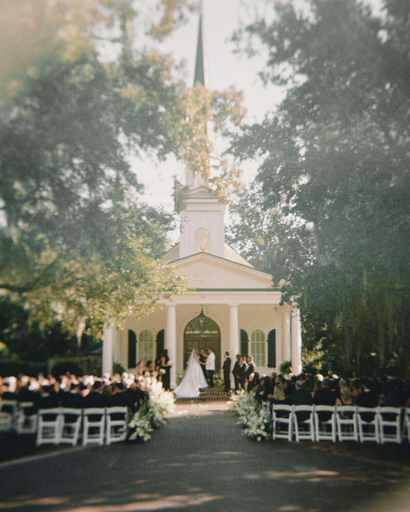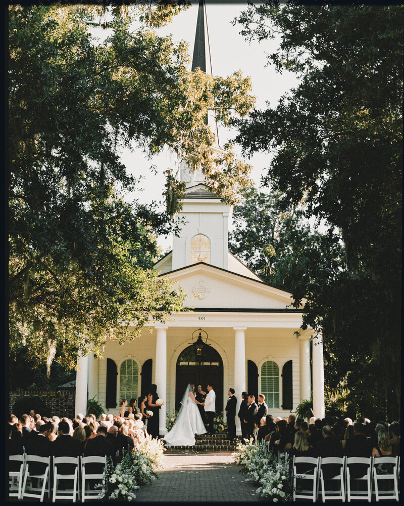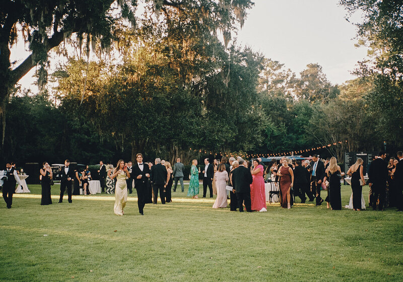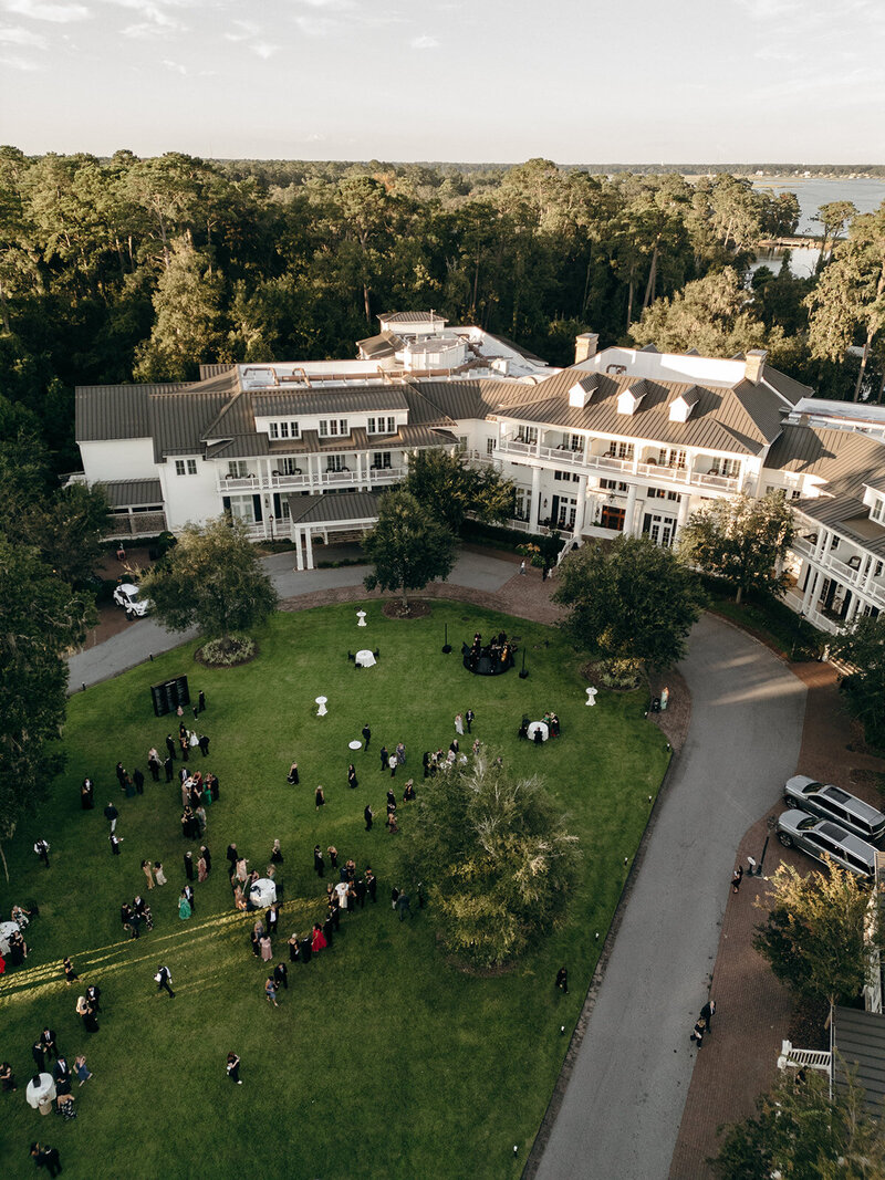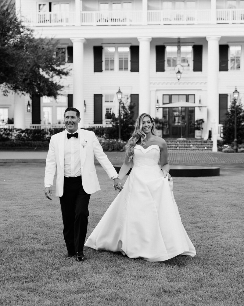 A timeless celebration at Montage Palmetto Bluff, where Meghan and Johnny hosted an elegant black-tie wedding reminiscent of old Hollywood romance. Guests enjoyed an outdoor cocktail hour beneath the oaks before entering a dramatic black-and-white jazz bar–inspired reception. Every wall was draped in black, candles lined long tables, and the atmosphere felt intimate and endlessly classic, a night that echoed the same sophistication once shared by Hailey and Justin Bieber at this storied venue.