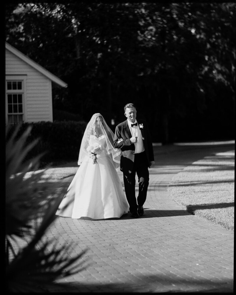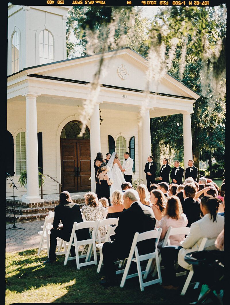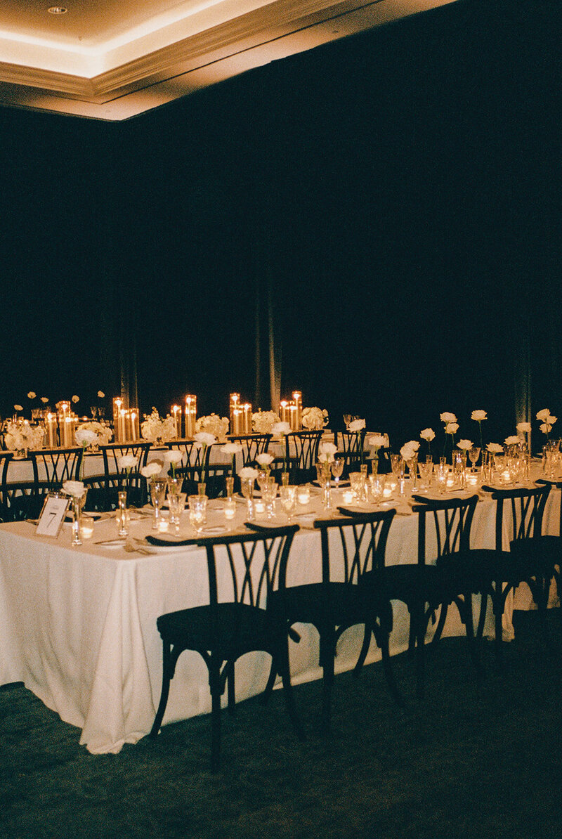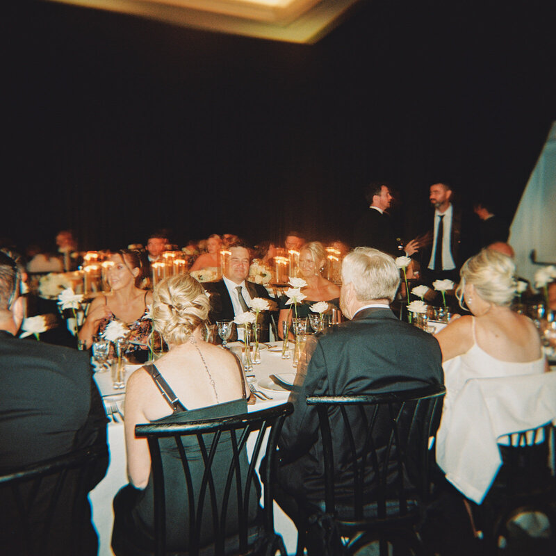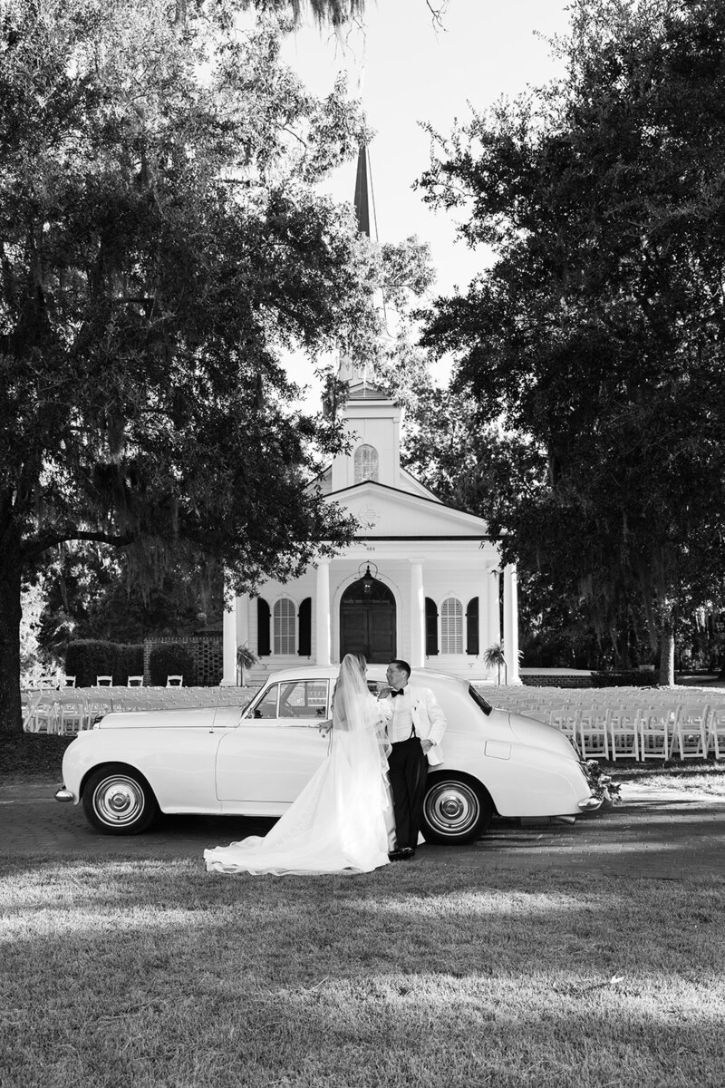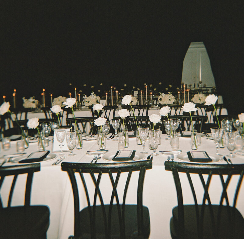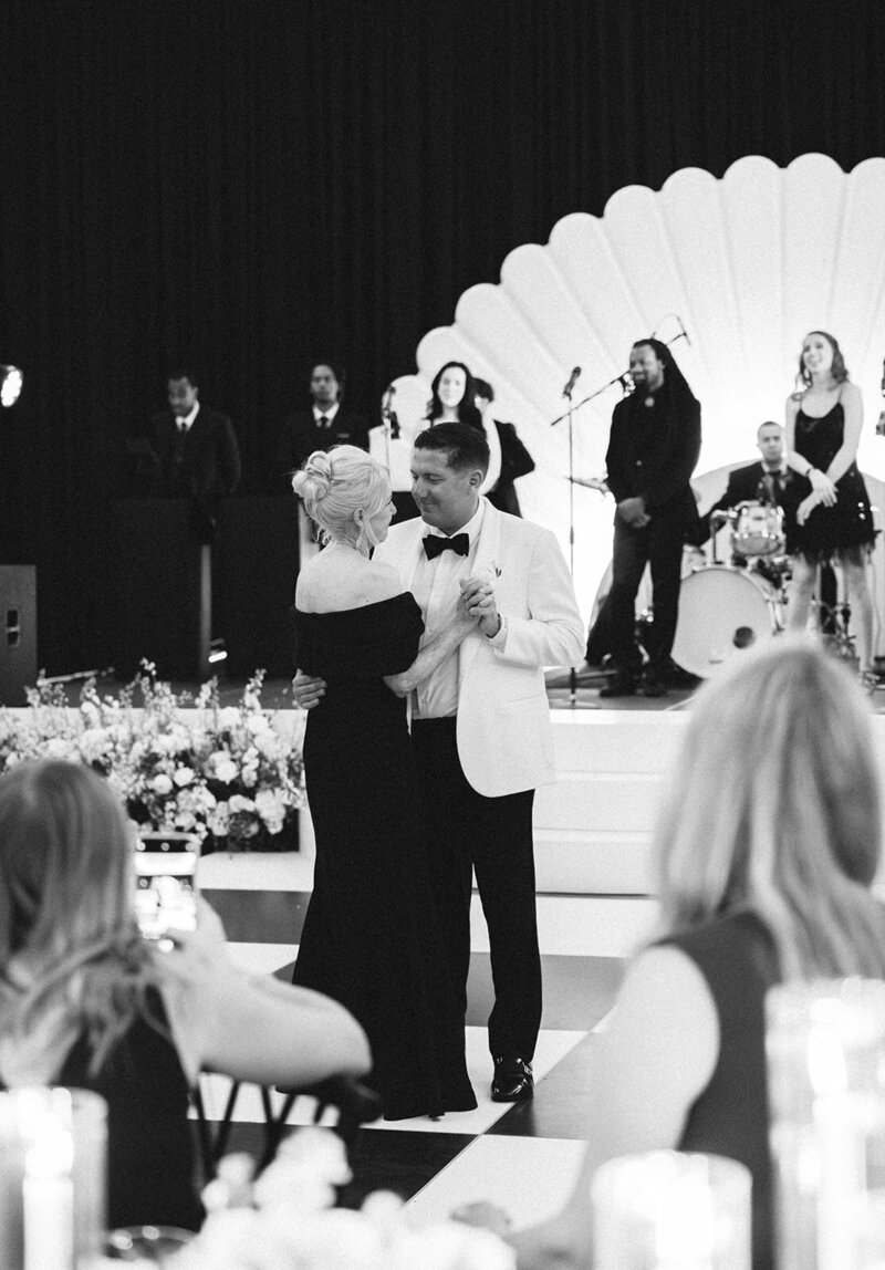 A timeless celebration at Montage Palmetto Bluff, where Meghan and Johnny hosted an elegant black-tie wedding reminiscent of old Hollywood romance. Guests enjoyed an outdoor cocktail hour beneath the oaks before entering a dramatic black-and-white jazz bar–inspired reception. Every wall was draped in black, candles lined long tables, and the atmosphere felt intimate and endlessly classic, a night that echoed the same sophistication once shared by Hailey and Justin Bieber at this storied venue.