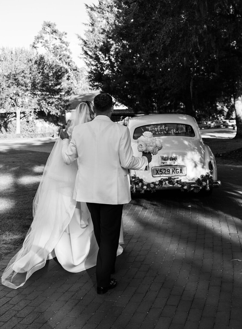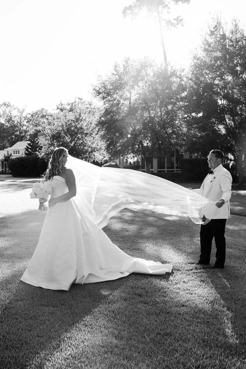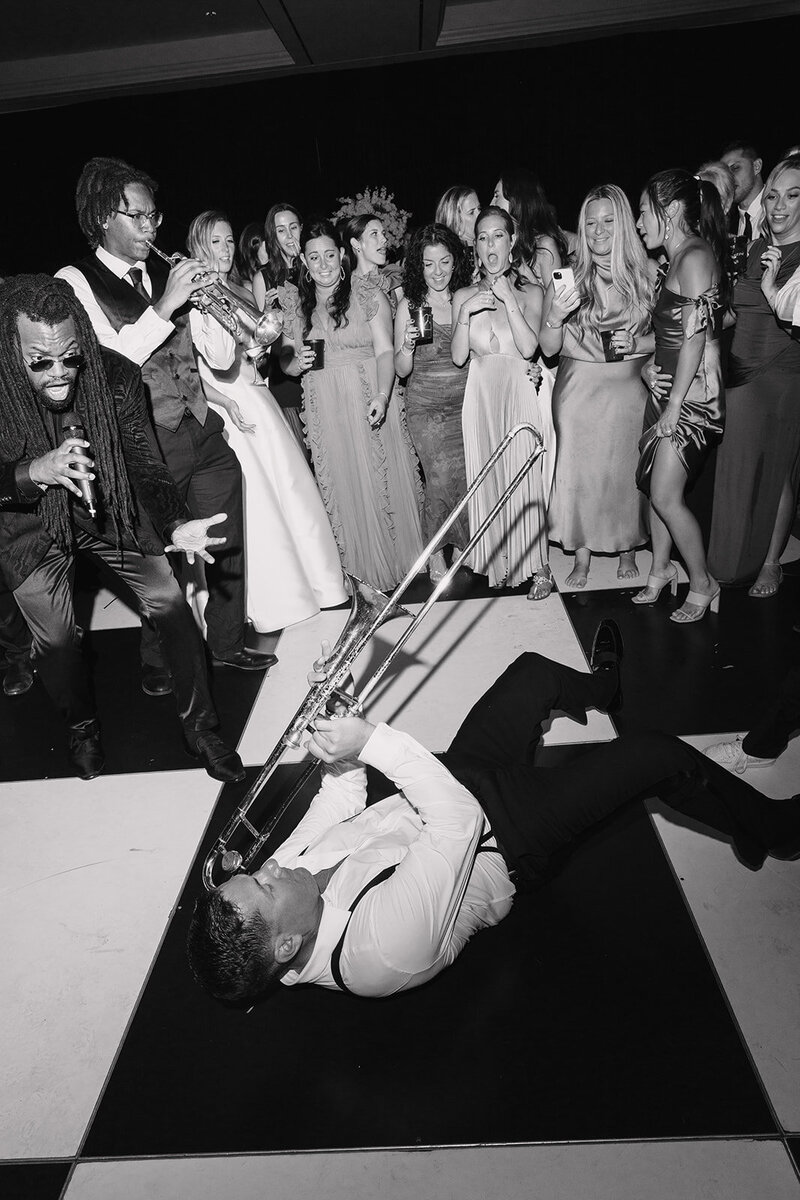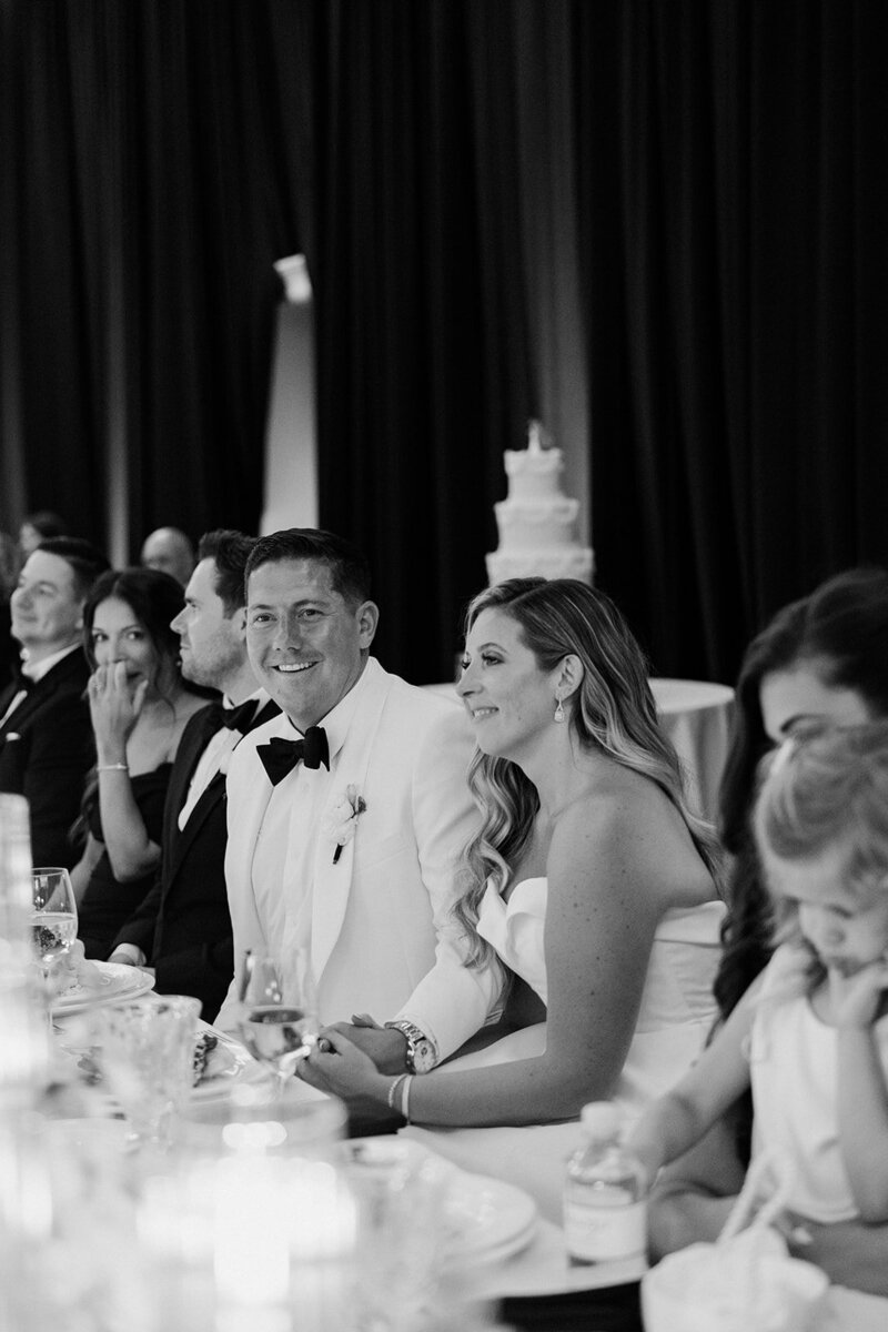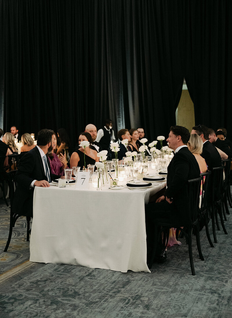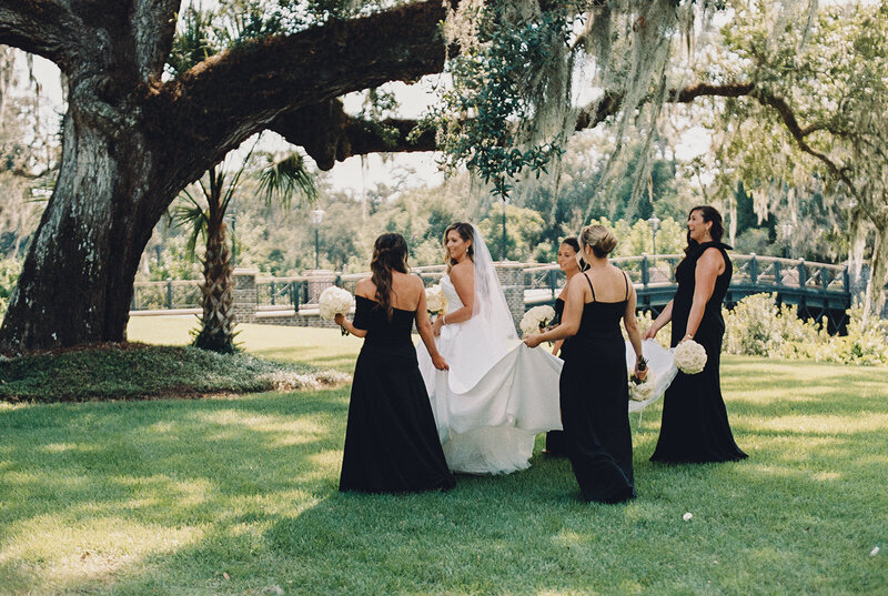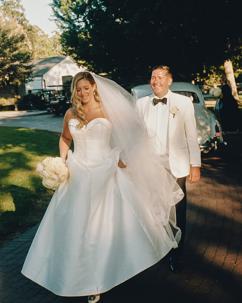 A timeless celebration at Montage Palmetto Bluff, where Meghan and Johnny hosted an elegant black-tie wedding reminiscent of old Hollywood romance. Guests enjoyed an outdoor cocktail hour beneath the oaks before entering a dramatic black-and-white jazz bar–inspired reception. Every wall was draped in black, candles lined long tables, and the atmosphere felt intimate and endlessly classic, a night that echoed the same sophistication once shared by Hailey and Justin Bieber at this storied venue.